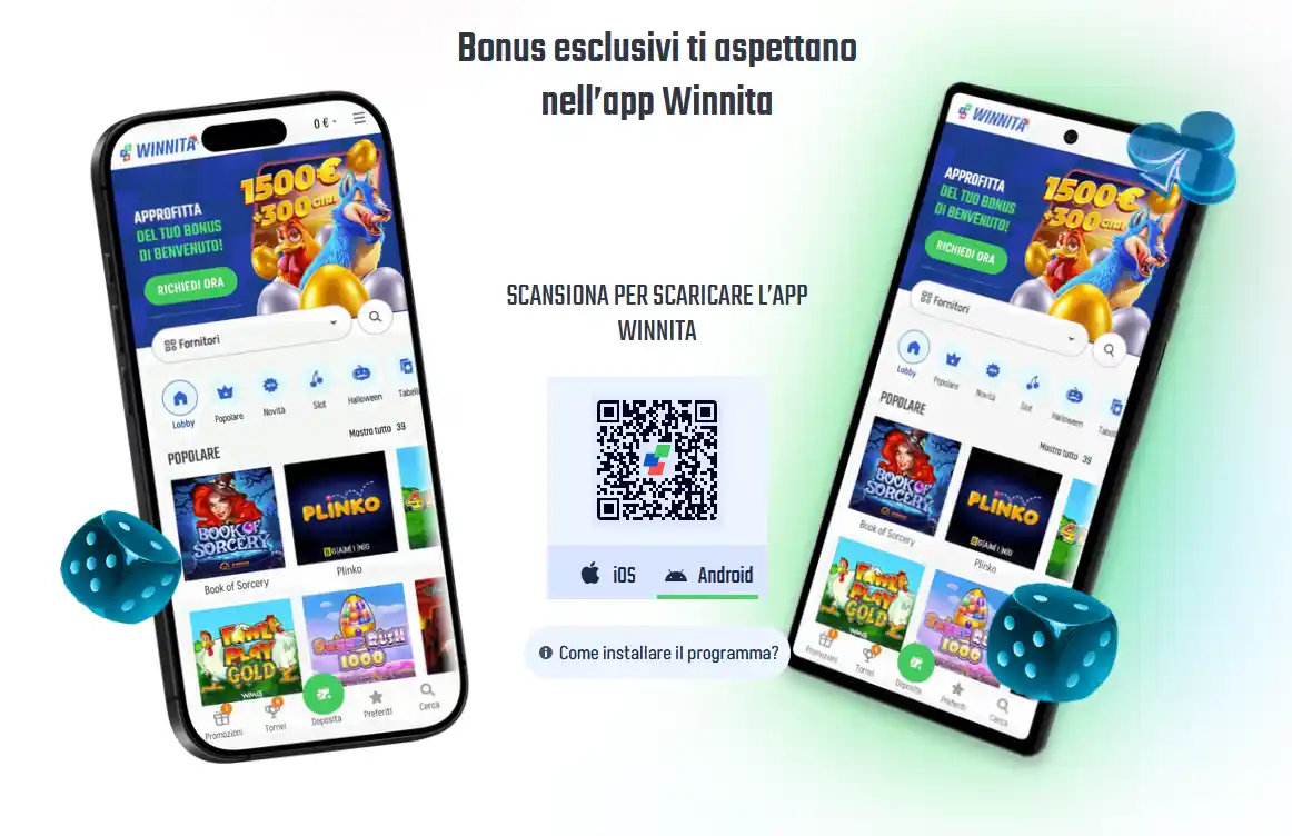 I bonus rimangono identici su tutta l'applicazione mobile Winnita e il sito desktop. Depositi, giri gratuiti e scommesse gratuite si applicano universalmente a tutte le piattaforme. Riscuotere bonus tramite l'app li attiva istantaneamente, senza restrizioni o limitazioni specifiche della piattaforma.